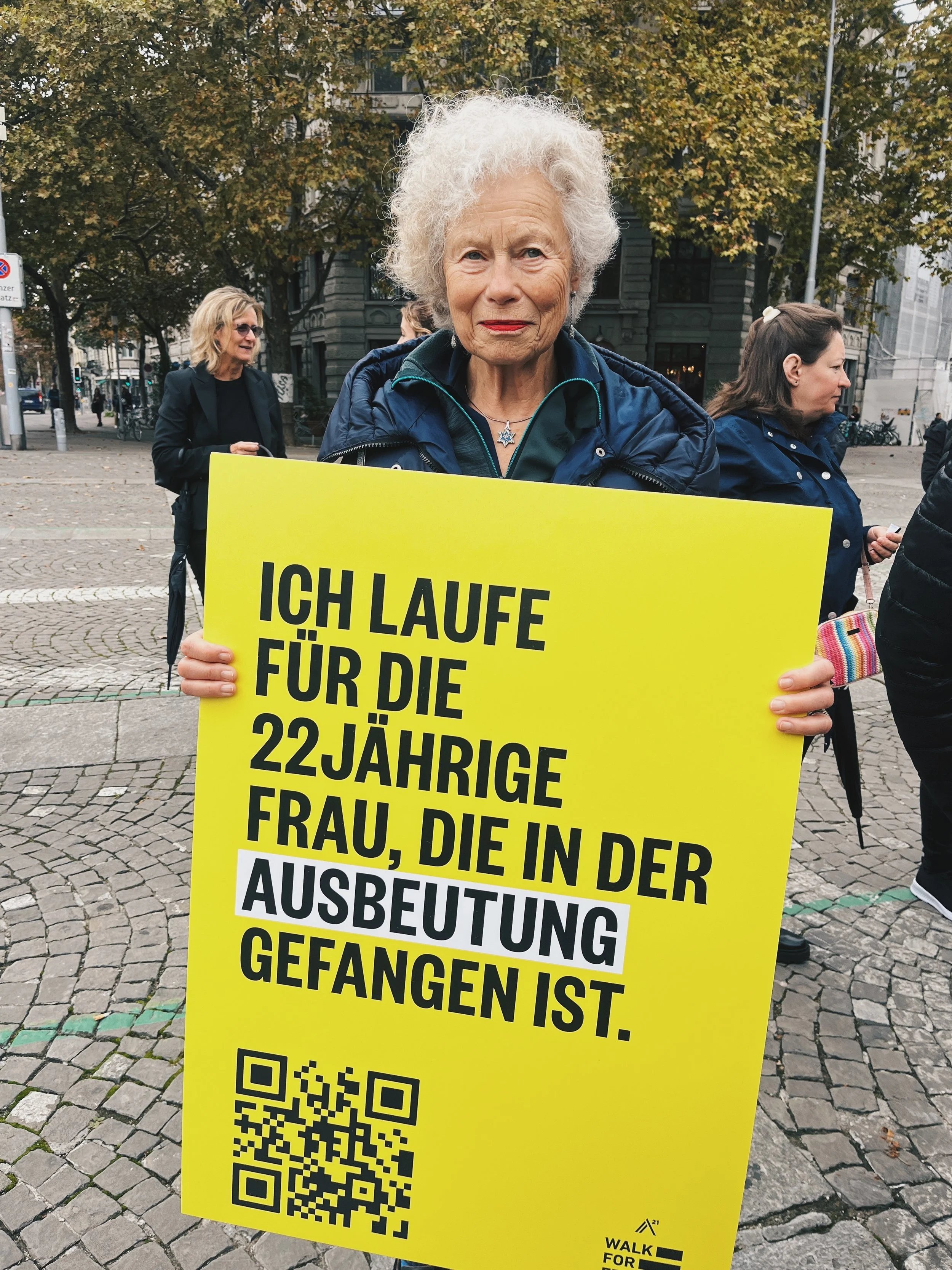 Als ich mich umschaue, sehe ich wie Stéphanie eine Träne über die Wange läuft. Sie drückt ihr Töchterchen fest an sich. Auch mir schiessen Tränen in die Augen. Aline Wüst, Autorin von «Piff, Paff, Puff: Prostitution in der Schweiz», erzählt Geschichten von Frauen in der Sexindustrie. Frauen, die ihre Freundinnen geworden sind. Frauen, die Träume und Wünsche haben wie wir. Doch die gefangen sind in einem Beruf, den sie lieber nicht ausüben möchten. Aber müssen, entweder weil sie dazu gezwungen werden, von einem Zuhälter oder Loverboy, oder weil sie einfach keine andere Möglichkeit haben, um Geld zu verdienen. Sie arbeiten für sich und oft auch für ihre Familien und manchmal auch Kinder in einem anderen Land wie Ungarn, Rumänien, Thailand oder Brasilien. Etwa 120 Menschen, vorwiegend Frauen, hören Aline zu. Es ist eine Zeit des Informierens, des sich Einstimmens auf das Thema, auf den Walk for Freedom.